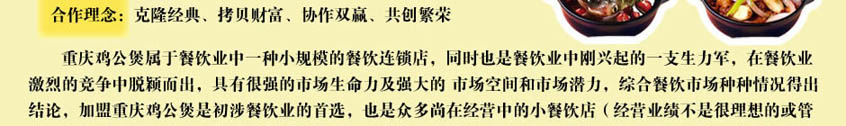 中的"重慶雞公煲"都能看到一派欣欣向榮的景象,在眾多的餐飲業(yè)中獨樹一幟,具有很強(qiáng)的市場感召力。