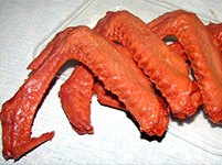 特點:武漢久久鴨以香、麻、辣為主,吃時不麻不辣,可一旦停下來則香辣味無窮。鴨脖講究涼吃,光啃肉,鴨脖肉為“活肉”層次分明,頗有嚼勁,肉啃完后,則吸吮骨節(jié)間的骨髓,“滋溜”一聲,令人頗有一種成就感。最后喜辣者可將骨頭嚼碎,細品慢吸,體驗“唇齒留香”而余味悠長。 賣點:武漢久久鴨在烈日炎炎的夏天,男士們佐以啤酒,三、五個朋友聚在一起,就著幾根鴨脖、鴨頭、鴨掌聊天調侃既開心,辣得又過癮。在寒冷的冬天,因天氣寒冷,而使人不想進餐,但如果啃著鴨脖、鴨頭、喝著白酒立刻胃口大開,同時也可驅寒保暖,辣味能打開人的毛孔,讓您大汗淋漓,邊啃邊出汗。而且它也是一種休閑食品,在有些城市的地鐵、公交車上經?吹,人們在車上食用,也是外出野餐、旅游、在家看電視的好伴侶。 妙處:武漢久久鴨采用祖?zhèn)髑旯欧郊右袁F(xiàn)代科技,它用三十多種中藥材及純天然香料,它雖然口味香辣、營養(yǎng)豐富,但脂肪含量較低,經常食用,能補充人體必須的蛋白質、維生素E、維生素B等多種營養(yǎng)成分。中草藥具有補脾益氣、潤肺止咳、清熱消腫,而且還能養(yǎng)顏滋補,是極好的美容佳品。 |