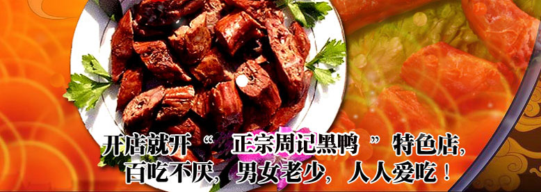 的全套技術(shù),函授費(fèi)用2000元。 周記黑鴨 學(xué)習(xí)的品種有: ◎整鴨系列:新一代周記黑鴨、新一代醬板鴨、新一代鹵全鴨。 ◎鴨付系列:鴨脖、鴨頭、鴨掌、鴨翅、鴨腸、鴨肝、鴨排、鴨鎖骨、鴨心、鴨食管、鴨舌等等。 ◎雞系列:
